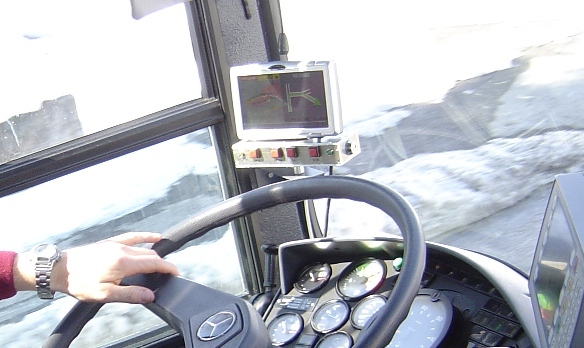 Die bevorstehende Kursänderung wird automatisch an die Fahrzeug-Bordrechner übermittelt und den Fahrern auf einer Art Navigationssystem angezeigt. Der Fahrer bestätigt die Ankündigung und erhält