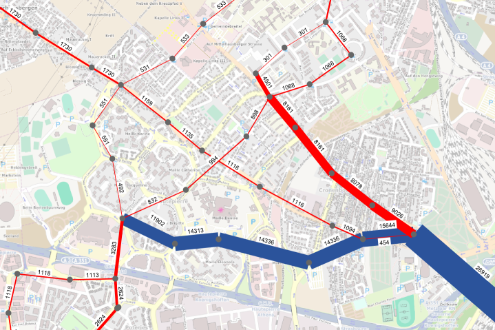 die Nachbildung des Wahlverhaltens der Verkehrsteilnehmer und die Umlegung der Fahrten auf konkrete Routen. Entscheidend für die Routenwahl sind dabei u. a. die Fahrzeit,